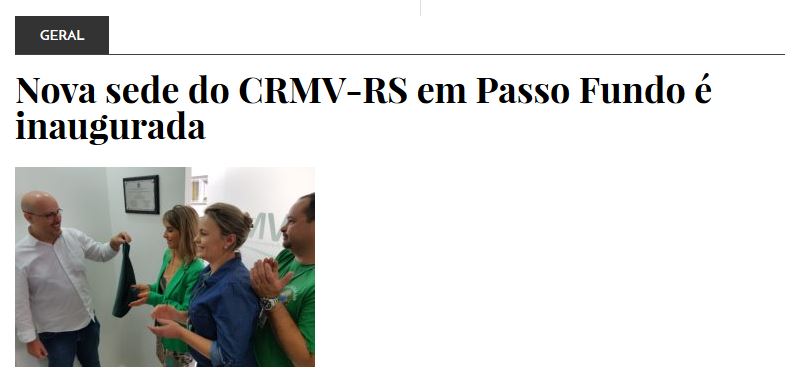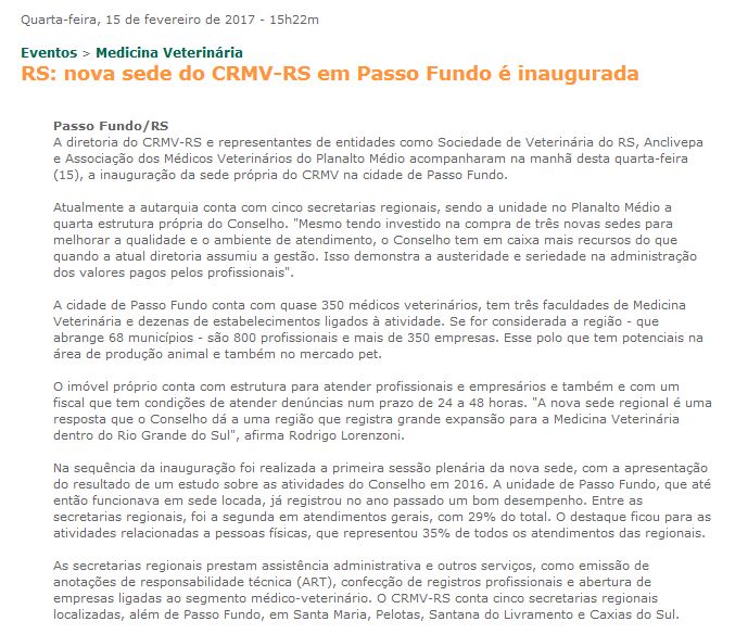 15/02/2017 – Portal Gazeta: Nova sede do CRMV-RS em Passo Fundo é inaugurada