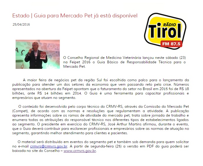 25/04/2016 – Rádio Tirol: Guia para Mercado Pet já está disponível
