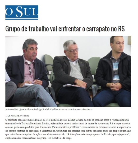 12/05/2016 – O Sul: Grupo de trabalho vai enfrentar o carrapato no RS
