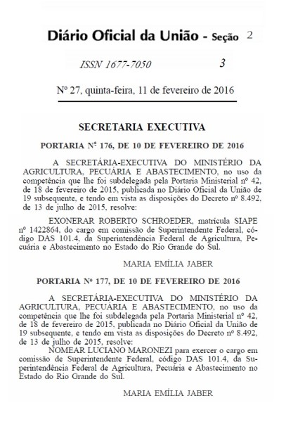 11/02/2016 – Mapa exonera superintendente no RS