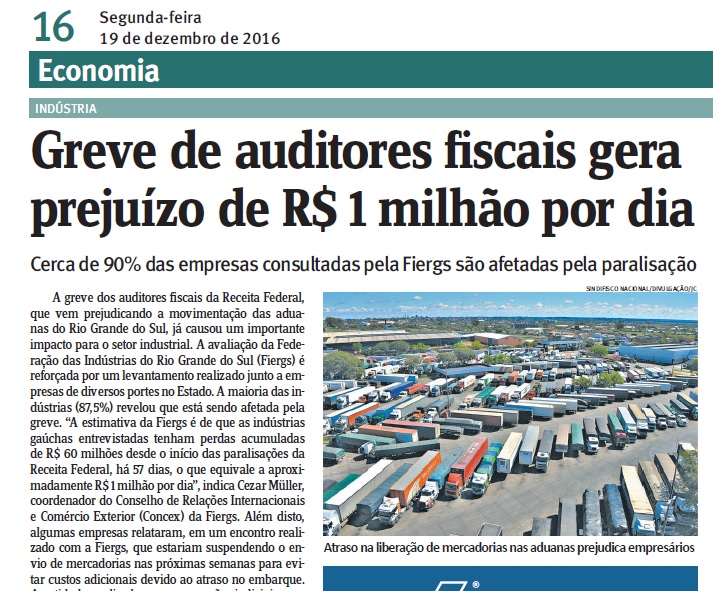 19/12/2016 – JC: Greve de auditores fiscais gera prejuízo de R$ 1 milhão por dia