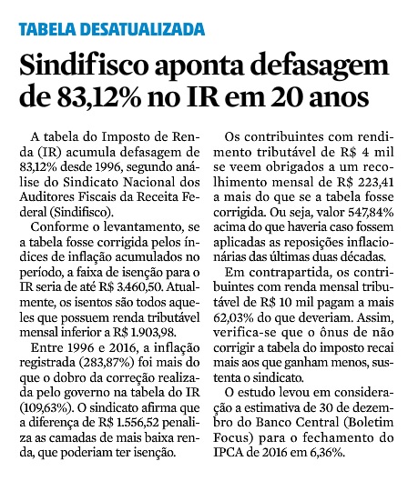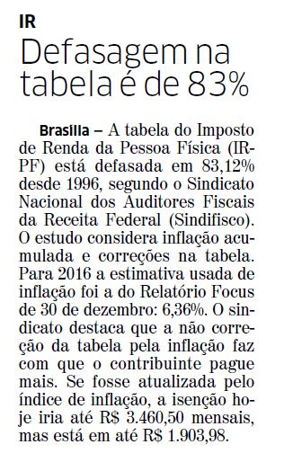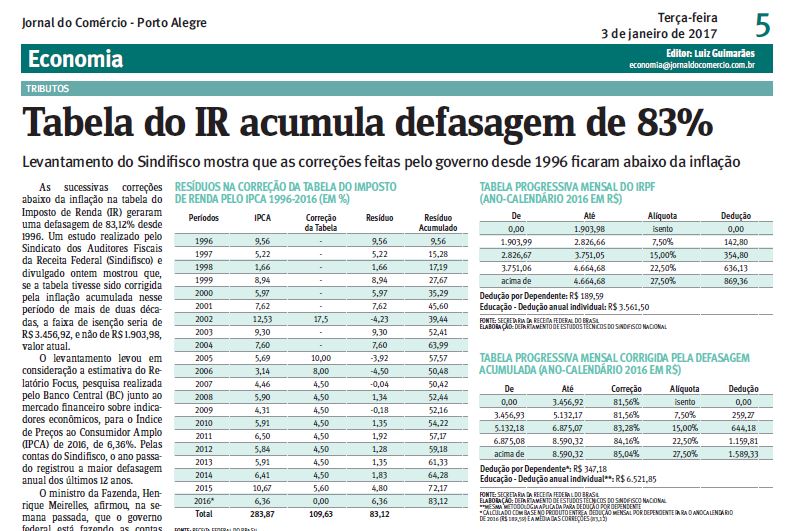 03/01/2017 – JC: Tabela do IR acumula defasagem de 83%
