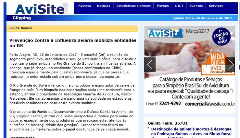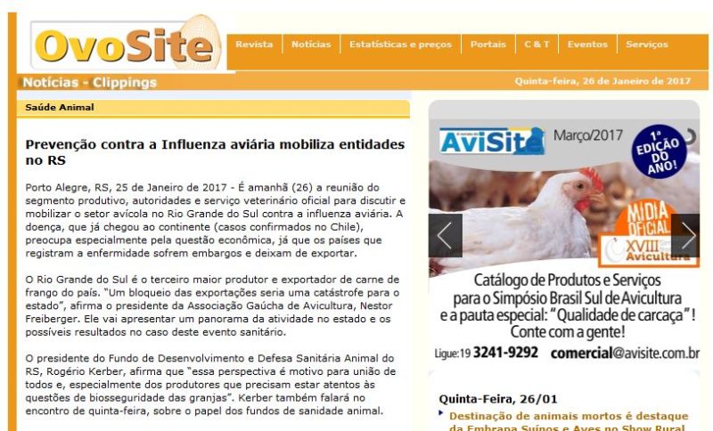 25/01/2017 – AviSite: Prevenção contra a Influenza aviária mobiliza entidades no RS