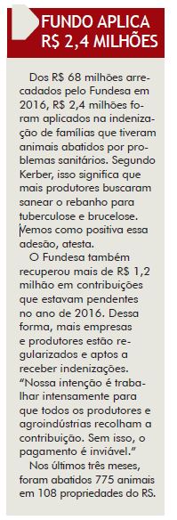 A HORA | CIDADES | PÁGINA 6 Dos R$ 68 milhões arrecadados pelo Fundesa em 2016, R$ 2,4 milhões foram aplicados na indenização de famílias que tiveram animais abatidos por problemas sanitários. Segundo Kerber, isso significa que mais produtores buscaram sanear o rebanho para tuberculose e brucelose. Vemos como positiva essa adesão, atesta. O Fundesa […]