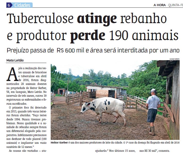 19/01/2017 – A Hora: Tuberculose atinge rebanho e produtor perde 190 animais