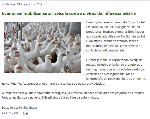 19/01/2017 – AgroLink: RS: evento vai mobilizar setor avícola contra influenza