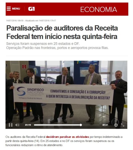 14/07/2016 – G1: Paralisação de auditores da Receita Federal tem início nesta quinta-feira