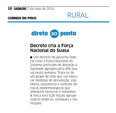 07/05/2016 – CP: Decreto cria a Força Nacional do Suasa