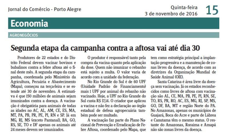 03/11/2016 – JC: Segunda etapa da campanha contra a aftosa vai até dia 30