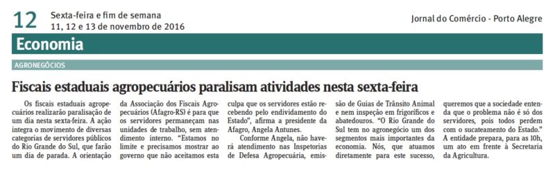 11/11/2016 – JC: Fiscais estaduais agropecuários paralisam atividades nesta sexta-feira