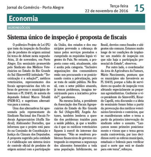 22/11/2016 – JC: Sistema único de inspeção é proposta de fiscais