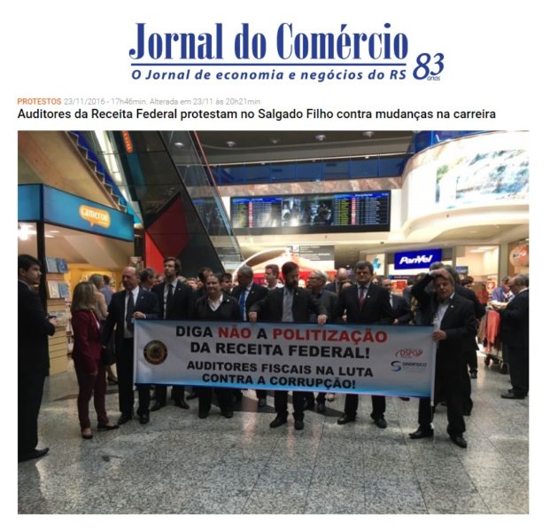 23/11/2016 – JC: Auditores da Receita Federal protestam no Salgado Filho contra mudanças na carreira