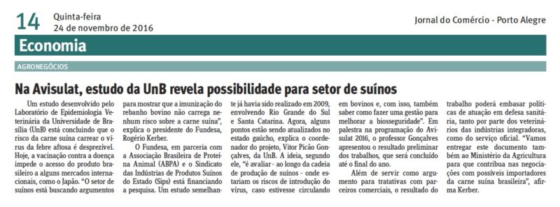 24/11/2016 – JC: Na Avisulat, estudo da UnB revela possibilidade para setor de suínos