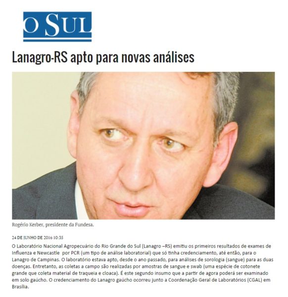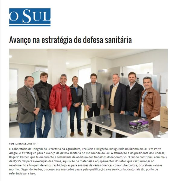 24/06/2016 – O Sul: Lanagro-RS apto para novas análises