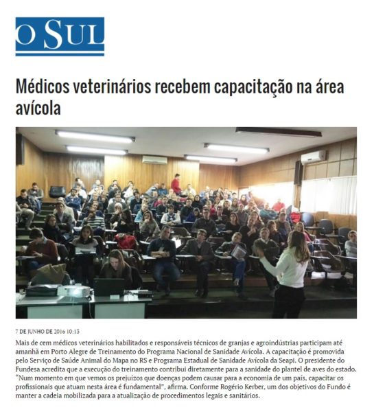 07/06/2016 – O Sul: Médicos veterinários recebem capacitação na área avícola