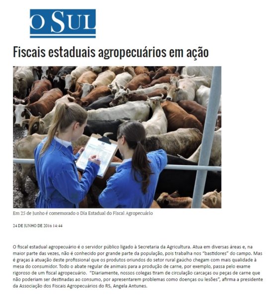 24/06/2016 – O Sul: Fiscais estaduais agropecuários em ação