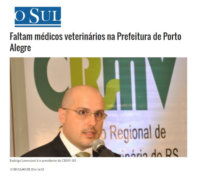 13/07/2016 – O Sul: Faltam médicos veterinários na Prefeitura de Porto Alegre
