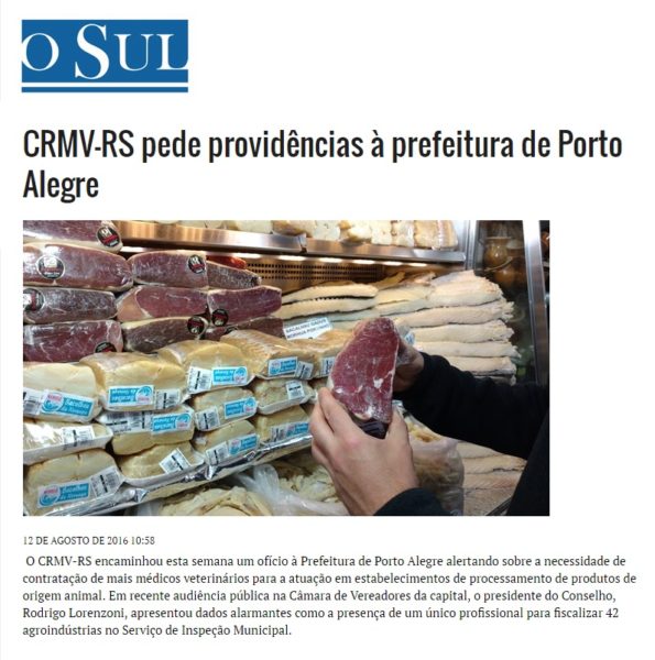 12/08/2016 – O Sul: CRMV-RS pede providências à prefeitura de Porto Alegre