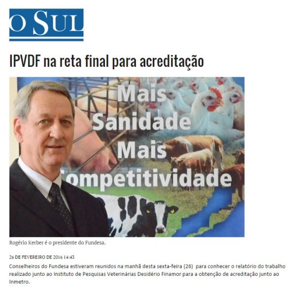 26/02/2016 – O Sul: IPVDF na reta final para acreditação