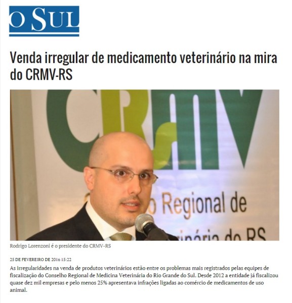 25/02/2016 – O Sul: Venda irregular de medicamento veterinário na mira do CRMV-RS