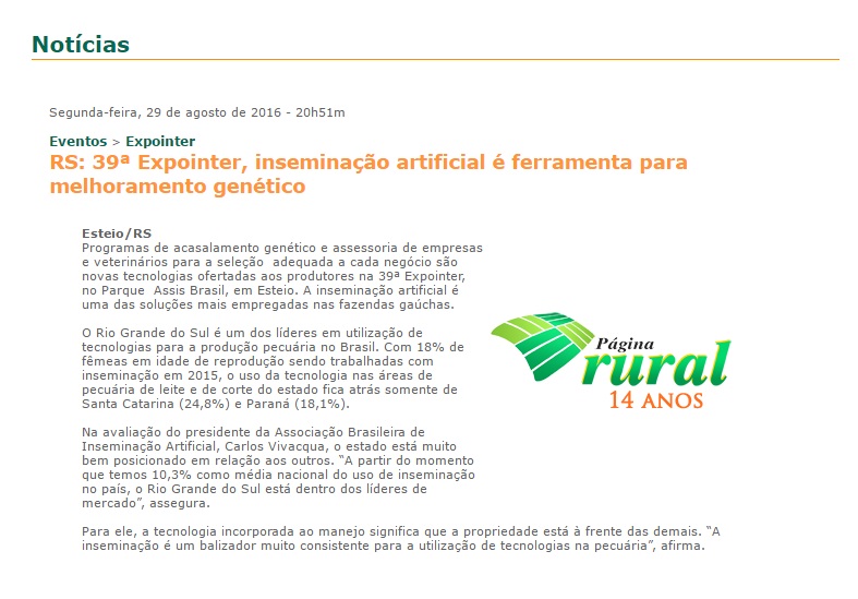 29/08/2016 – Página Rural: 39ª Expointer, inseminação artificial é ferramenta para melhoramento genético