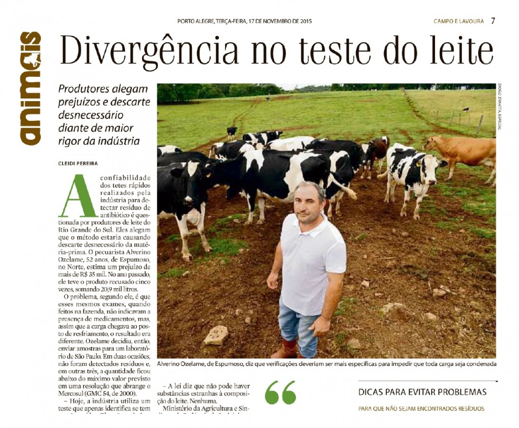 ZERO HORA | CAMPO E LAVOURA Produtores alegam prejuízos e descarte desnecessário diante de maior rigor da indústria A confiabilidade dos tetes rápidos realizados pela indústria para detectar resíduo de antibiótico é questionada por produtores de leite do Rio Grande do Sul. Eles alegam que o método estaria causando descarte desnecessário da matéria-prima. O pecuarista […]