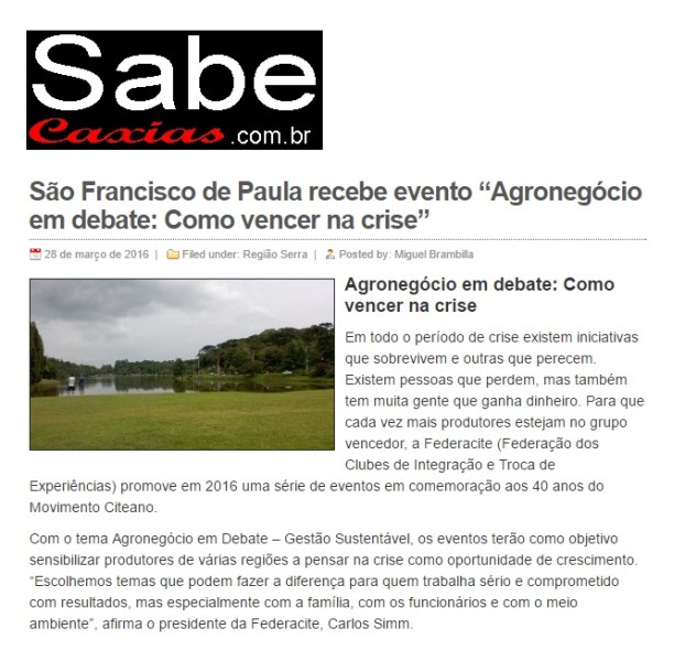 28/03/2016 – Sabe Caxias: São Francisco de Paula recebe evento “Agronegócio em debate: Como vencer na crise”