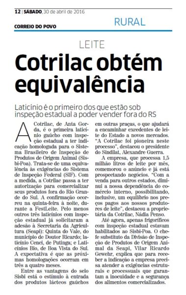30/04/2016 – CP: Cotrilac obtém equivalência