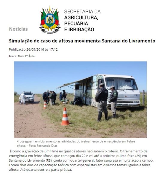 26/09/2016 – Seapi: Simulação de caso de aftosa movimenta Santana do Livramento