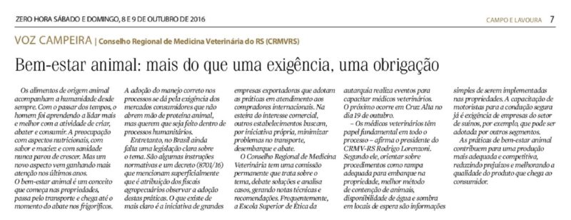 08/10/2016 – ZH: Bem-estar animal: mais do que uma exigência, uma obrigação