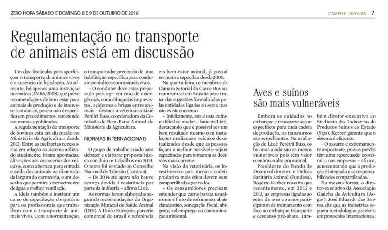 08/10/2016 – ZH: Regulamentação no transporte de animais está em discussão